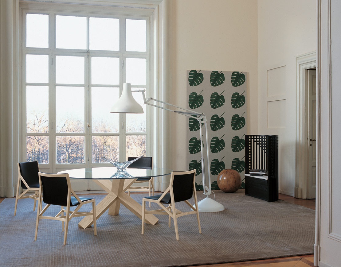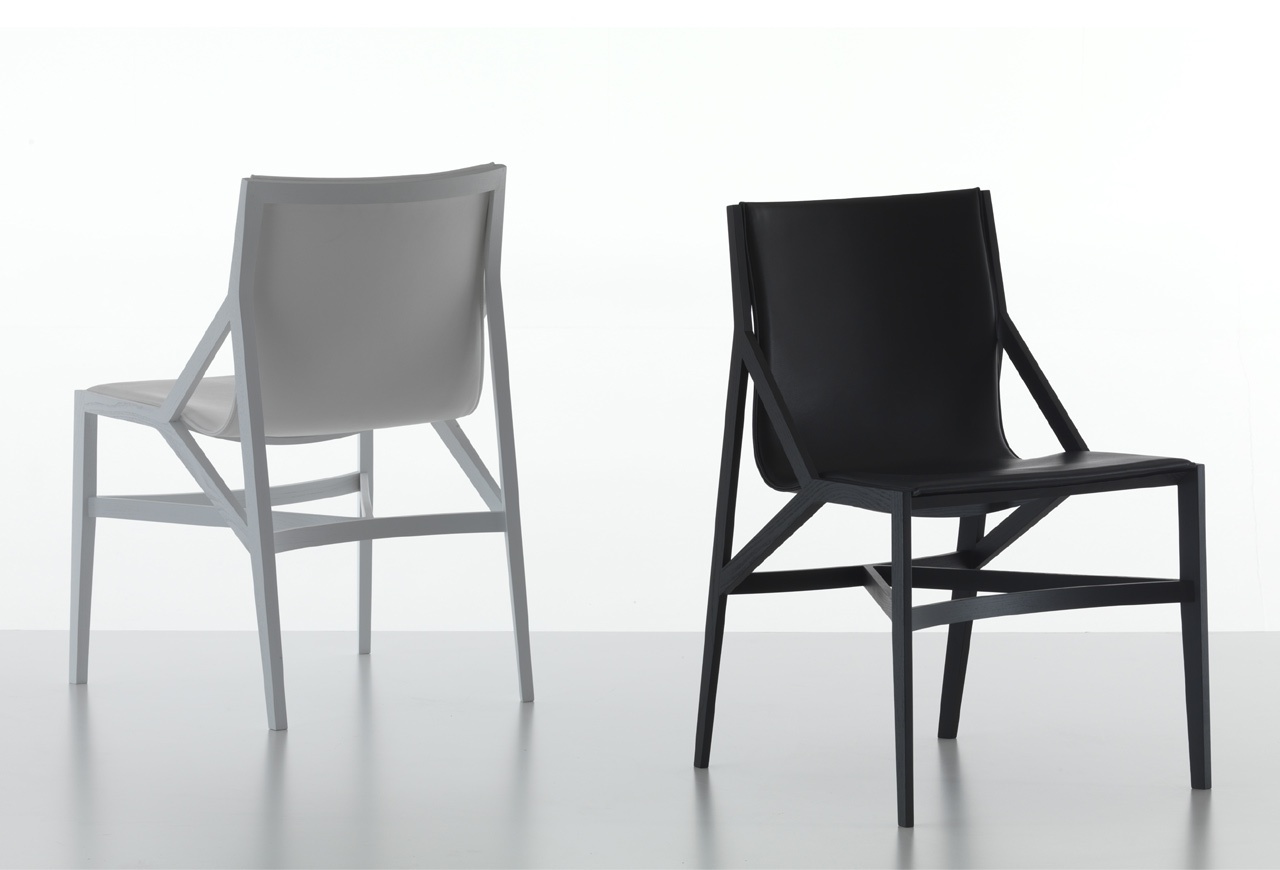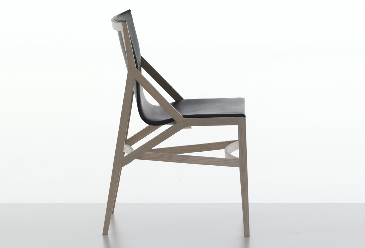 A chair made of wood 471 PILOTTA from the Italian manufacturer Cassina. The frame is made from solid wood, upholstery leather. Colours in stock.