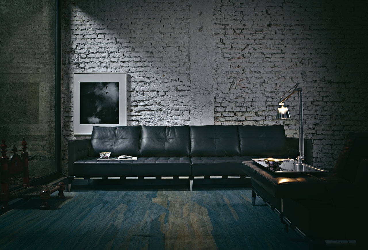 The 241 PRIVE sofa double from the Italian manufacturer Cassina. Designer - Philippe Starck. The frame is made of aluminum, filler - foam, upholstery - leather. The model is decorated with stitch-Capito. Colors - in stock.