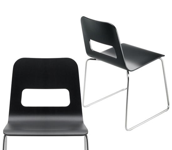 Stackable chair with Hole from the Italian manufacturer Lapalma. The frame is made of stainless steel, backrest and seat - solid oak. The model is designed for modern interiors. Colors: blond, red, black.