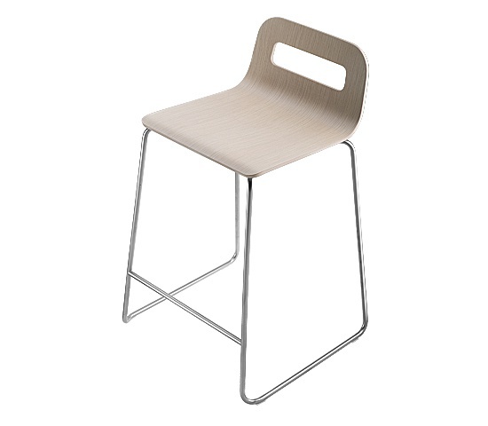 Stackable bar stool with Hole from the Italian manufacturer Lapalma. The frame is made of stainless steel, seat made of bent plywood. Colors: natural wood color, steel.