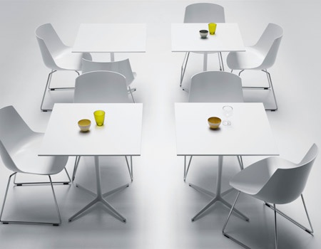 Flow dining table by Italian manufacturer MDF Italia. The frame is made from chromed metal. Colors - in stock. The model will perfectly complement the modern interior of the dining room. The table top is square. The table is designed for two persons.