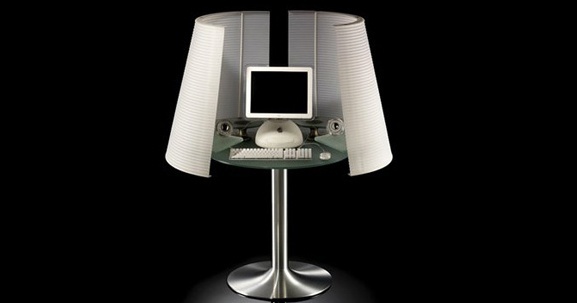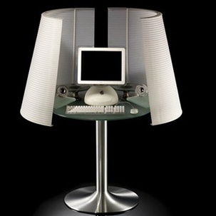 Computer Desk Angel from the Italian manufacturer Naos. The frame is made of aluminum. The door, in the shape of a lampshade - metacril. The table top is clear glass. The table can be used as computer, writing or as a makeup table.