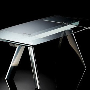 Felix dining table from Italian manufacturer Naos. The table top is made of transparent glass. Base - metal. The tabletop is complemented by the insert, to increase that you just have to push up from the bottom. The table is designed in modern style.