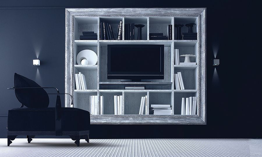 Closet CASABLANCA from the Italian manufacturer Ego. Frame made of solid wood. The model is made in art Deco style. Ergonomic and spacious wardrobe consists of many branches and niches under the TV.