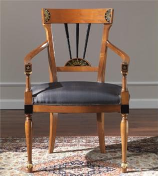 A chair from the Italian manufacturer Colombo Mobili. The frame is made from solid wood, upholstery - textiles from the company portfolio. Decor elements - bronze. Finish options: solid cherry/yew/ebony. Model with hard armrests. A great choice for the interior in classic style. Colors: natural wood color, black.