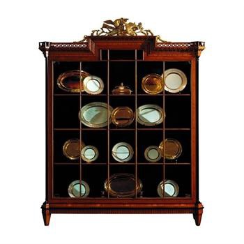 Showcase from Italian manufacturer Colombo Mobili. The frame is made from solid cherry and yew. The model is decorated with handmade carving. Front - gold foil. A chic choice for interior in classic style. Colors: natural wood color, brown.