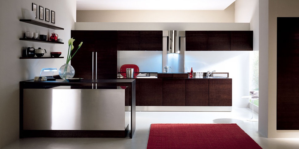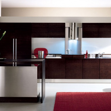 Kitchen set from Riccione Novalinea Italian manufacturer. The frame is made of wood and metal. Functionality and elegance are assembled together for perfect harmony. Sliding cutting boards, located above the working surface and the supporting surface. Riccione is the right choice for those who prefer a classic style with a contemporary. Colors - brown, silver and beige. The model is made with the island.