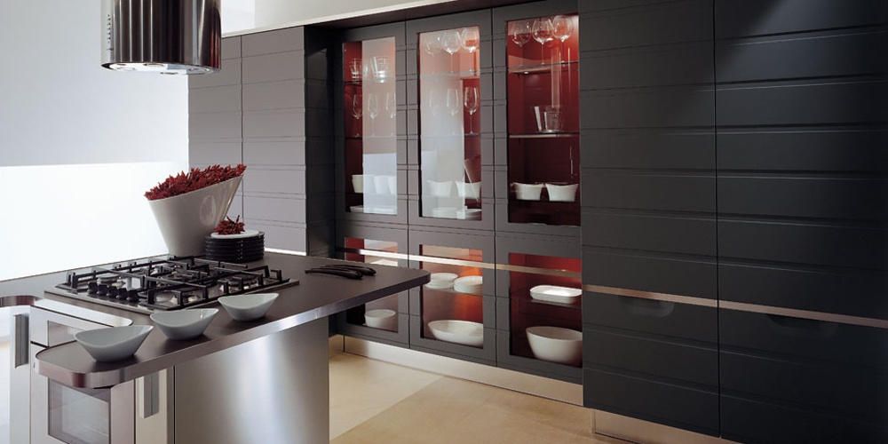 Traccia kitchen set from the Italian manufacturer Novalinea. The frame is made of wood and metal. The kitchen is designed with a bright personality. Finish - Matt lacquer, the range of the company. Colors - brown and white. The model is made in modern style.