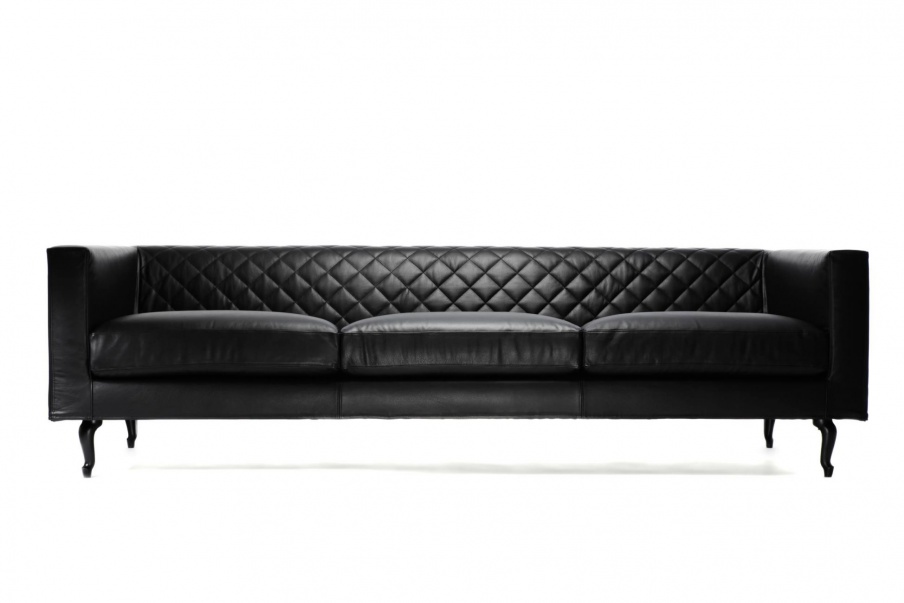 Boutique triple sofa Leather from the Dutch manufacturer Moooi. Model with legs made of aluminum, the frame is made of metal filler - polyurethane foam and Dacron varying stiffness. The design complements the decorative diamond stitch. Upholstery leather has flame retardant coating, color to be selected from the range manufacturer. Designer addition for interior living room in modern style.