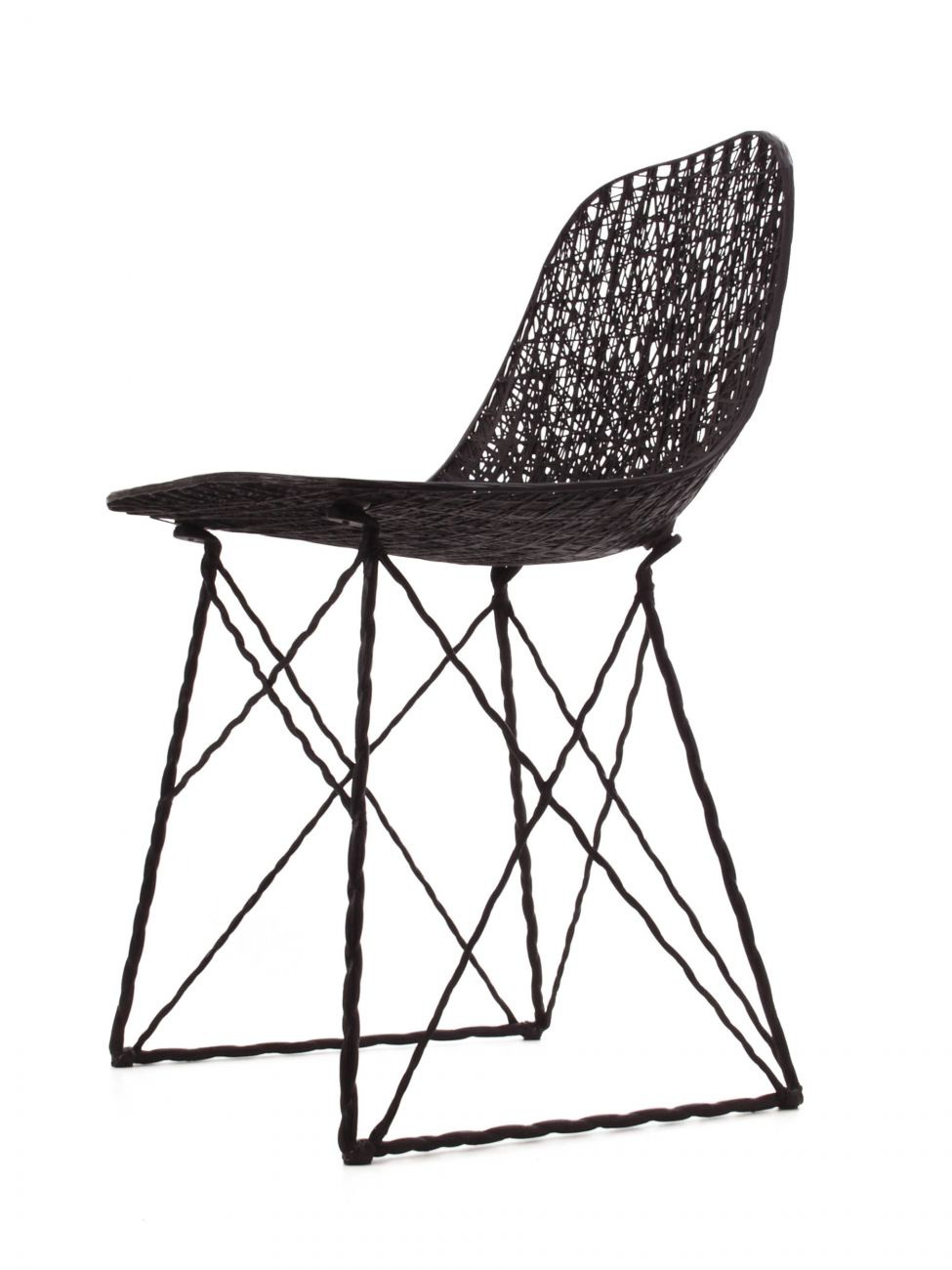 Chair Carbon Chair from the Dutch manufacturer Moooi. The frame is made of metal. Seat and back made of carbon fiber and epoxy resin in black. The model will perfectly complement the modern interior of the dining room.