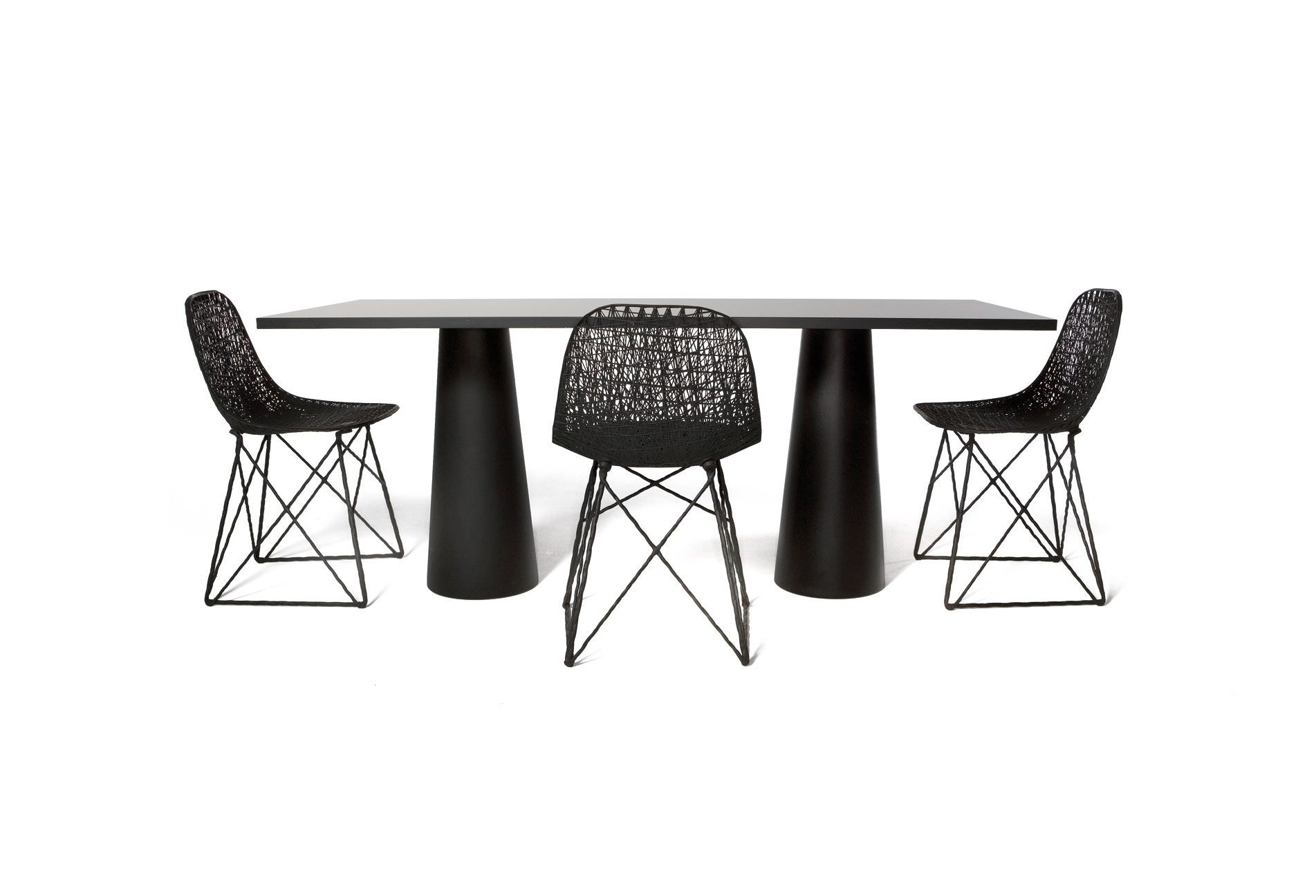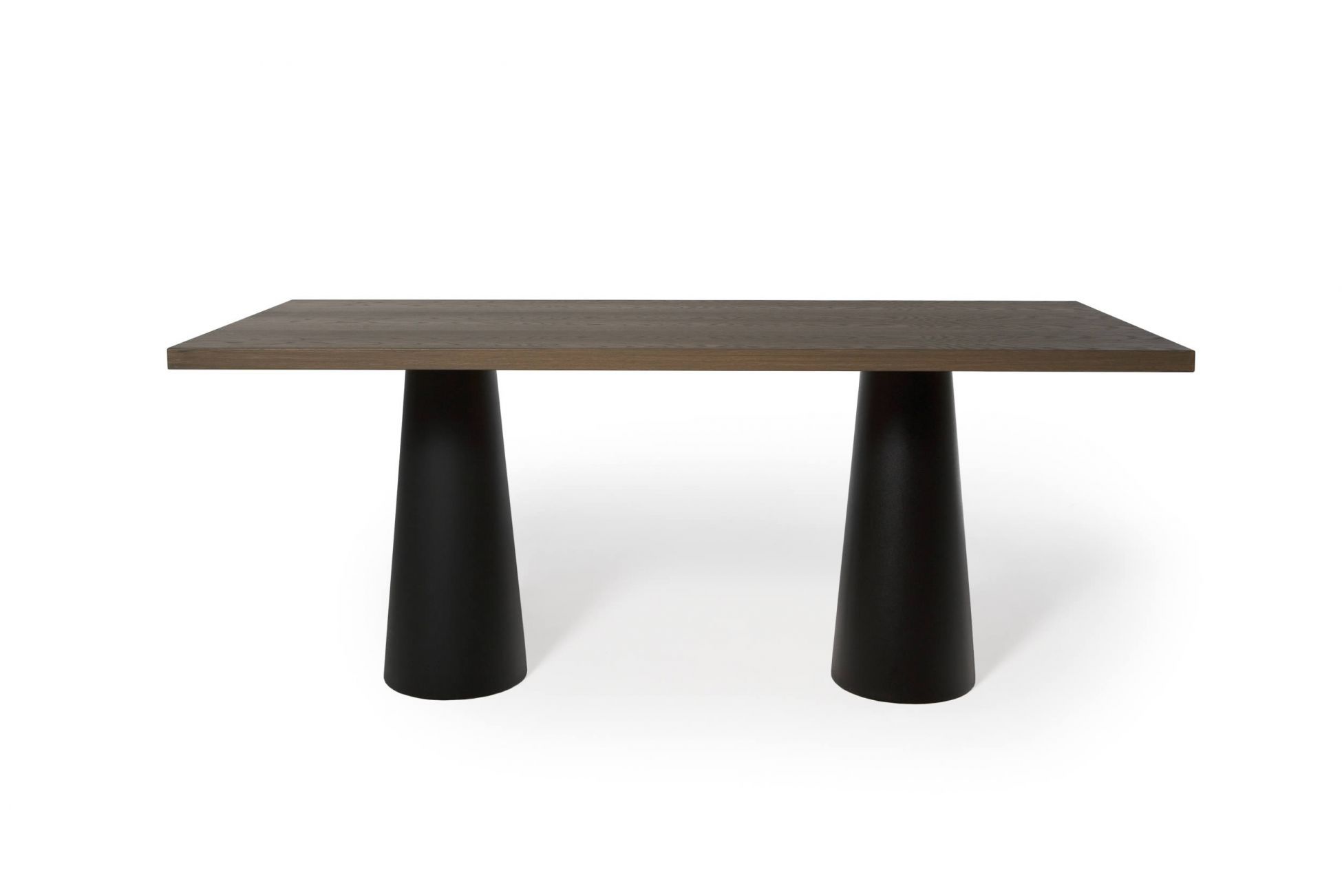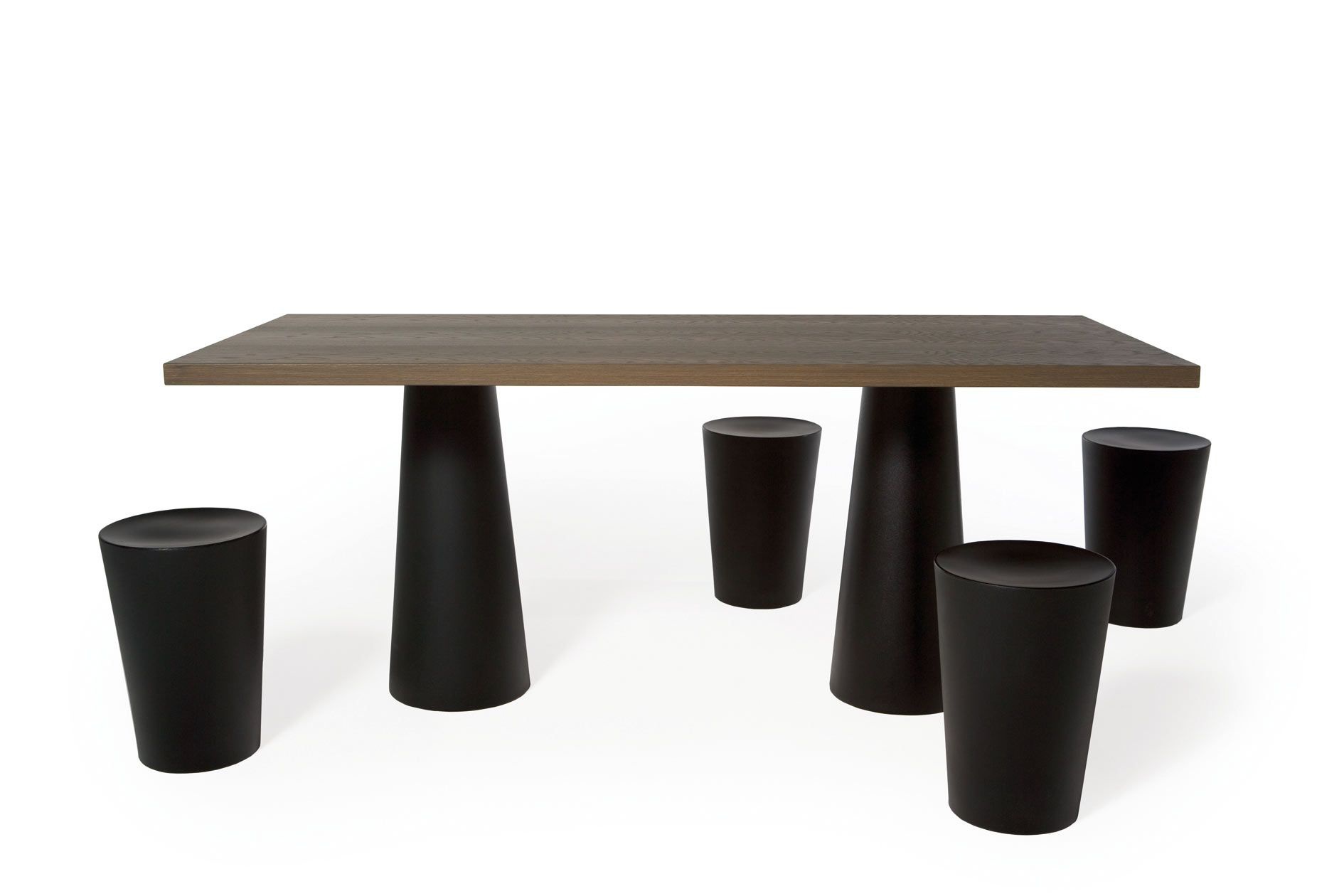 Dining table, rectangular Container Table 80180 from the Dutch manufacturer Moooi. The basis of the table in the form of a cone, made of polyethylene (PE), in white, black, brown, or gray tone. Table top available in three finishes: 1. MDF covered with HPL plastic, thickness 1.2 cm, can be used on the street; 2. Chipboard, plastic-coated, protects sidewall ABS (plastic), thickness 2.5 cm only for the premises; 3. Oak veneer, painted in 8 different colors, thickness 4 cm, only for rooms. An excellent choice for Your interior dining room design decoration.