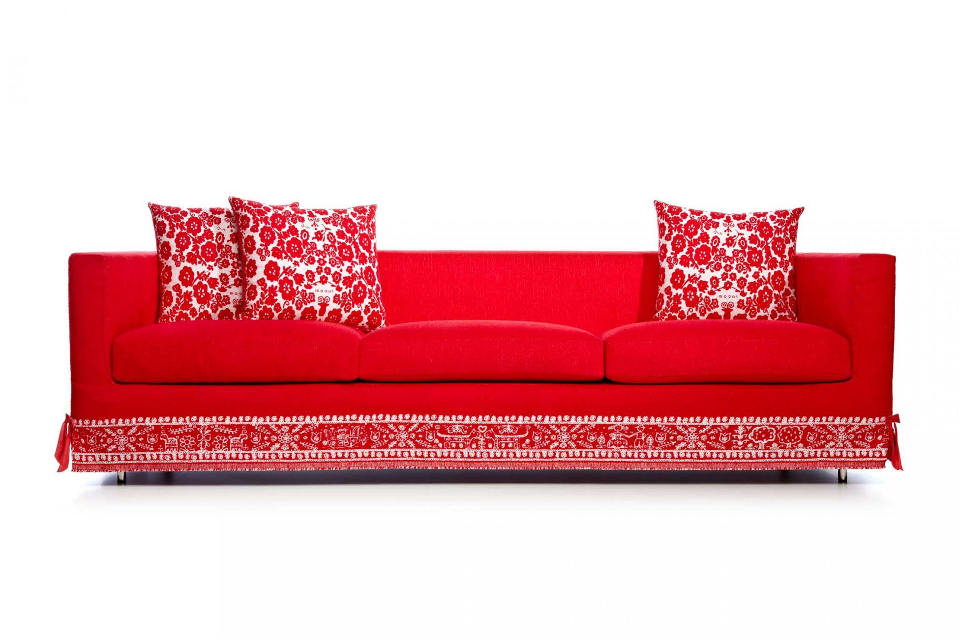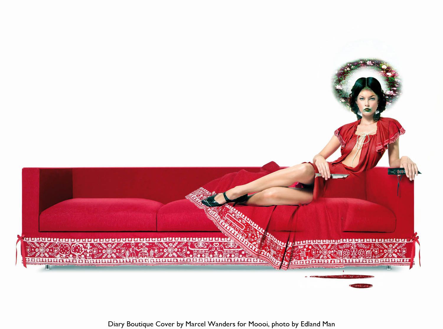 Three seater sofa Sofa Diary from Dutch manufacturer Moooi. Model with legs made of aluminum, the frame is made of metal filler - polyurethane foam of different hardness. The design of complementary decorative pillows. Upholstery textile, colors to choose from the range of the manufacturer. Designer addition to your interior living area.