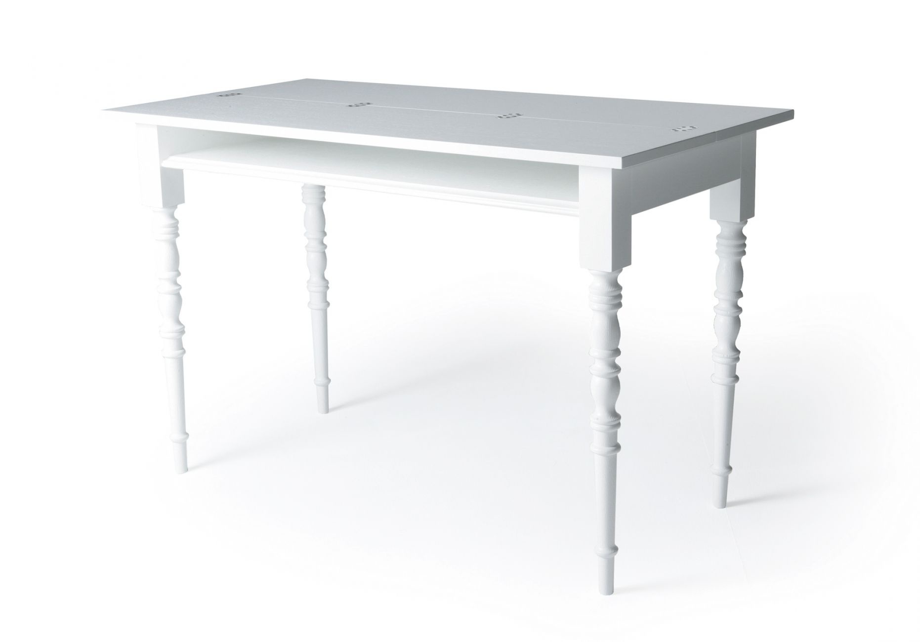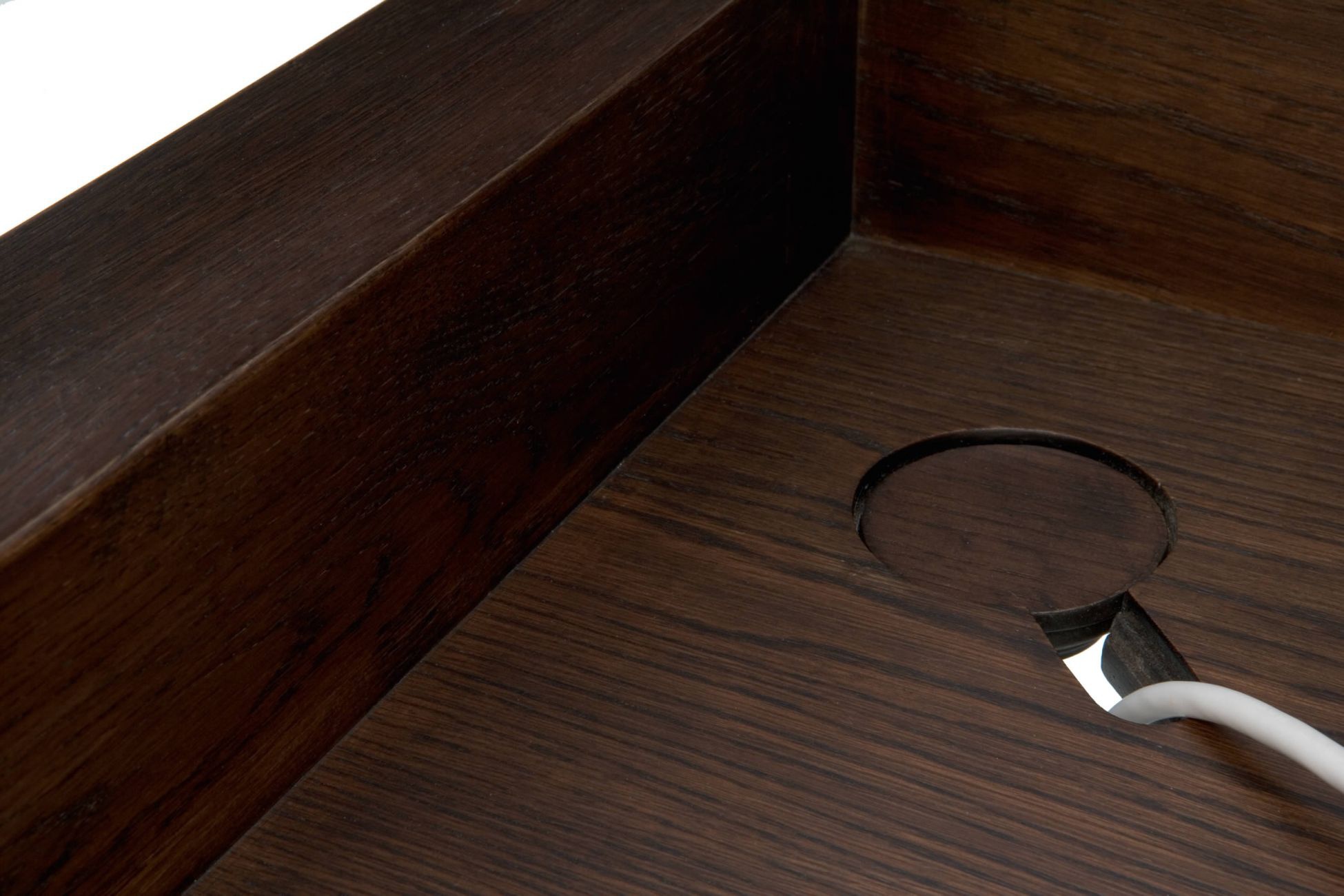 The Two Tops Secretary from the Dutch manufacturer Moooi. The base of the secretaire is made of solid oak, carved legs. Table top made from MDF covered with oak veneer. Finishing varnish from the company portfolio. The model is made with two table tops, with holes for wires. Design solution for the interior of your living room or office.