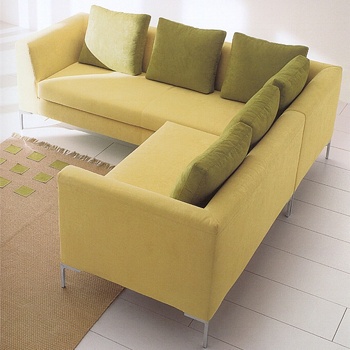 Corner modular sofa Basic corner sofa from Italian manufacturer Spagnol Group. The legs are made of metal. Upholstery - leather or fabric from the range campaign. The design of complementary decorative pillows. The perfect choice for a living room in modern style. Colours in stock.