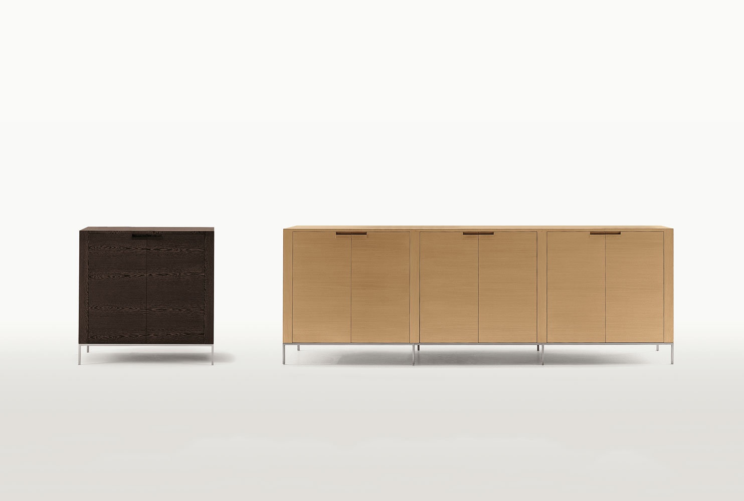 Cabinet Gemina from the Italian manufacturer Maxalto. Includes two sections with hinged doors. Material - solid wood and MDF. The surface is treated veneer from the collection of the factory.