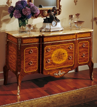 The Boccherini chest of drawers from Italian manufacturer Colombo Mobili. The frame is made of wood. Finishing varnish from the company portfolio. The chest consists of various-sized boxes. Fittings - metal. The model is decorated with carvings. A chest of drawers made in the classic style.