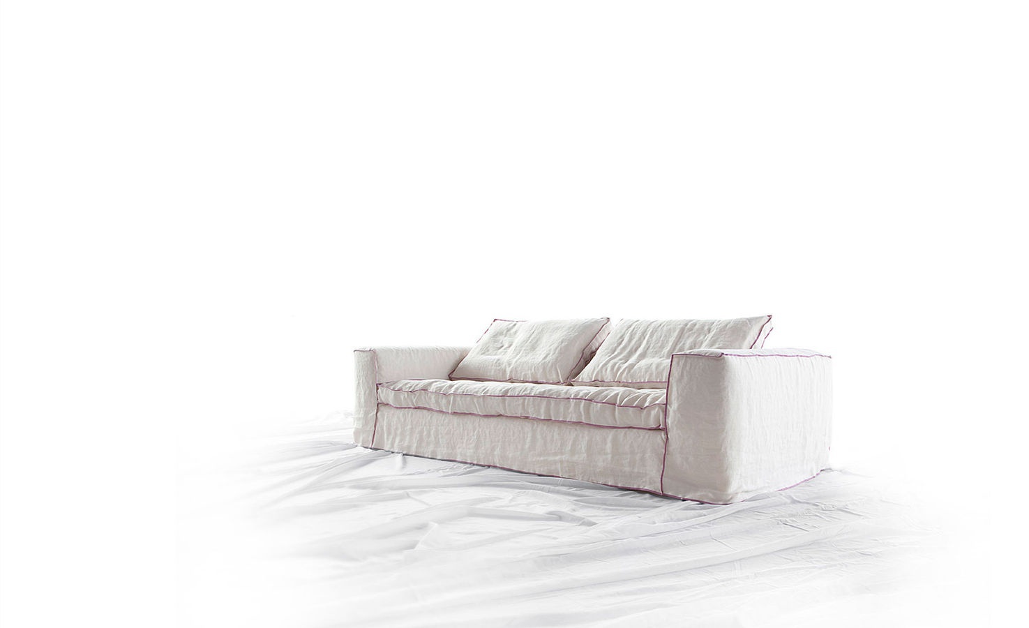 Double sofa Carta Bianca from the Italian manufacturer Erba Italia. The frame is made of wood. Upholstery - textiles from the company portfolio. The armrests are square. Color scheme - white. The sofa is designed in modern style. The backrest is complemented with soft cushions.