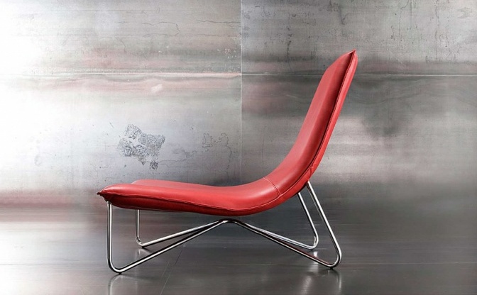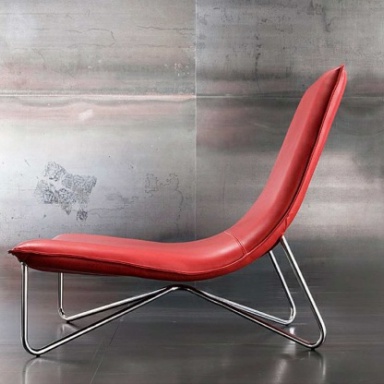 Gas armchair from Italian manufacturer Erba Italia. The frame is made of metal. Upholstery - leather, from the company portfolio. Colors - red. The back is high. The model is made in modern style.