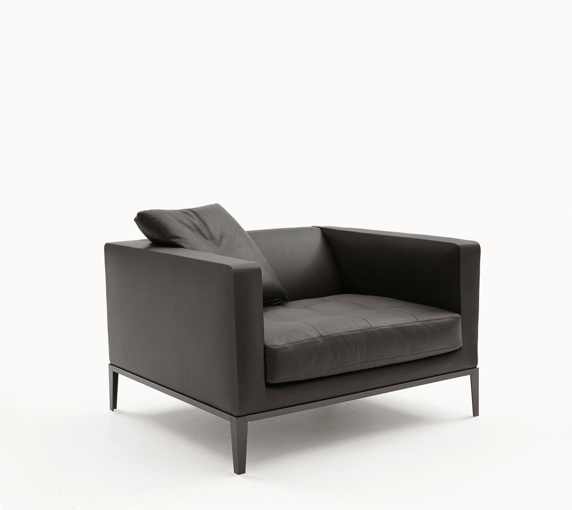Simpliciter armchair by Italian manufacturer Maxalto. The frame and legs are made of metal. Finish offered under Nickel or black lacquer. Seat and back can be upholstered in fabrics or leather. Filler - foam and fluff. Seat cushion is removable.