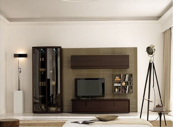Modular storage system from Italian manufacturer San Giacomo. The frame is made from solid wood. Module for books and TV. Wall with closed sections for storage. A great choice for living room in modern style. Product color brown.