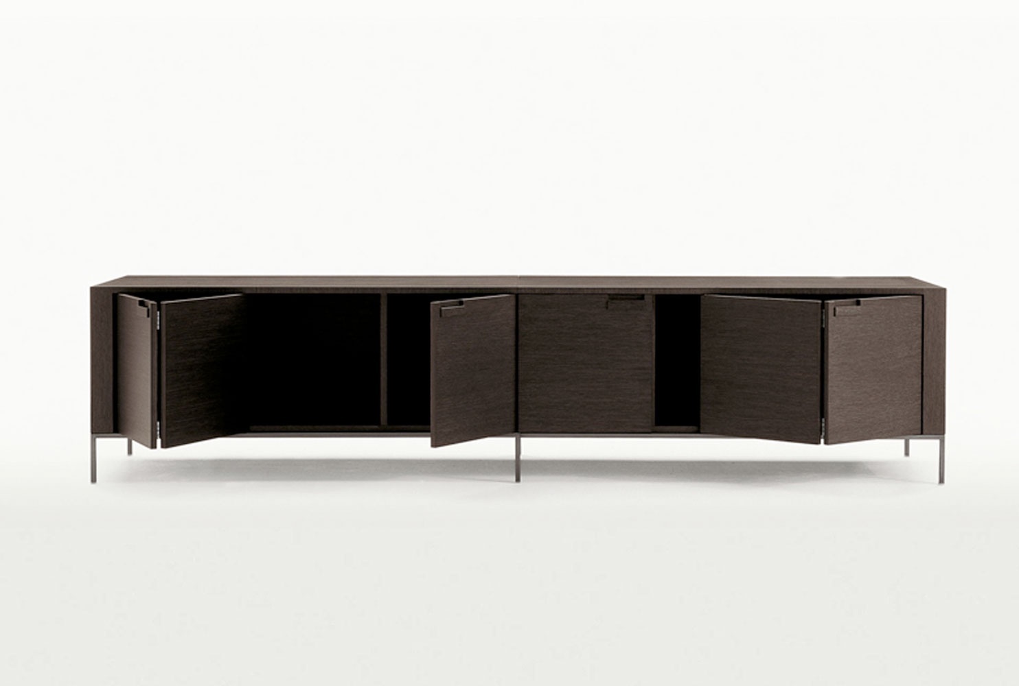 A chest of drawers from Italian manufacturer Maxalto. The model consists of 6 sections. The body is made of solid wood. Finish offered a choice from a range of factories. The legs are metal. Made in a modern style.