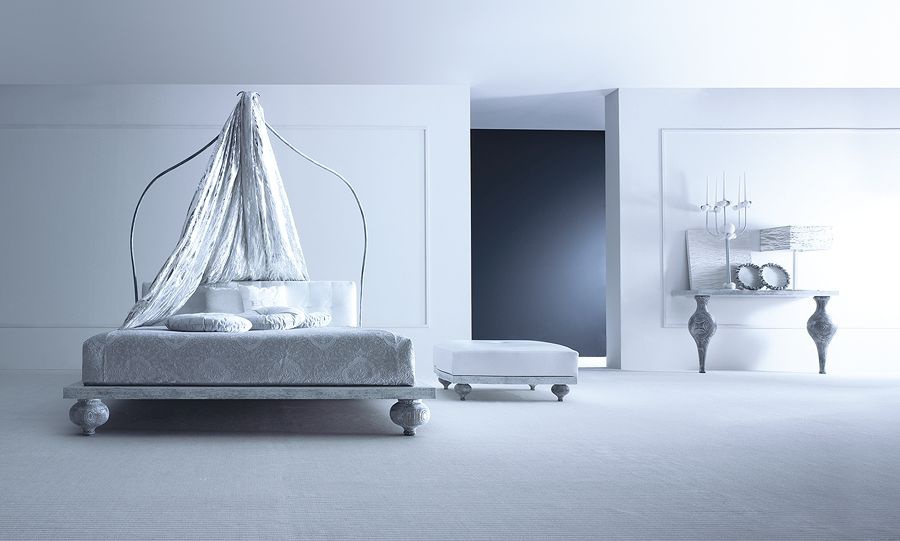 A four-poster bed, upholstered leather or fabric Agadir, Ego