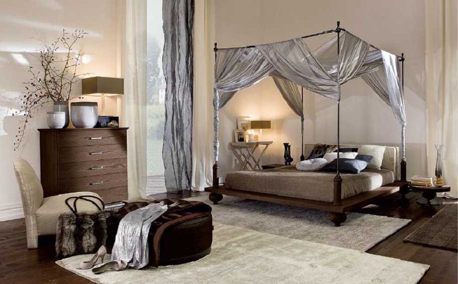 A four-poster bed, upholstered leather or fabric Marrakech, Ego