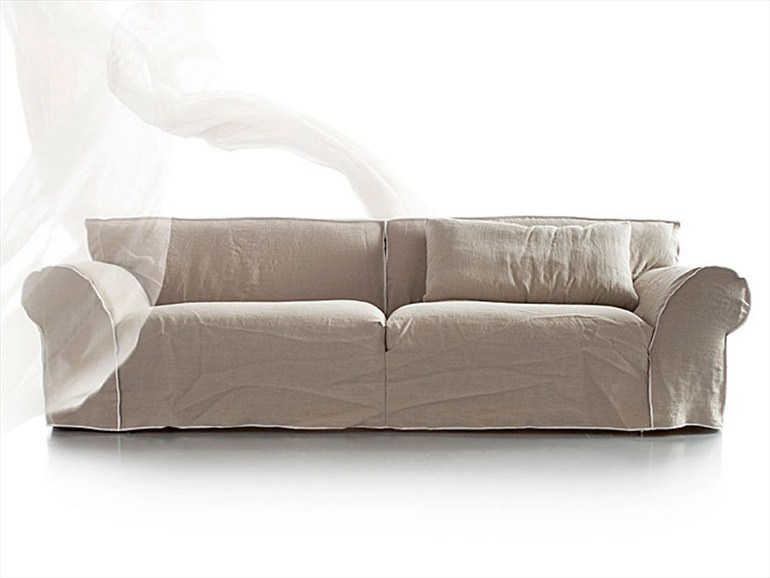 Mick double sofa from Italian manufacturer Erba Italia. The frame is made of wood. Upholstery - leather or textiles from a range of companies. Color scheme - white. Back dopolnena soft pillows. The armrests are wrapped. The model is made in modern style.