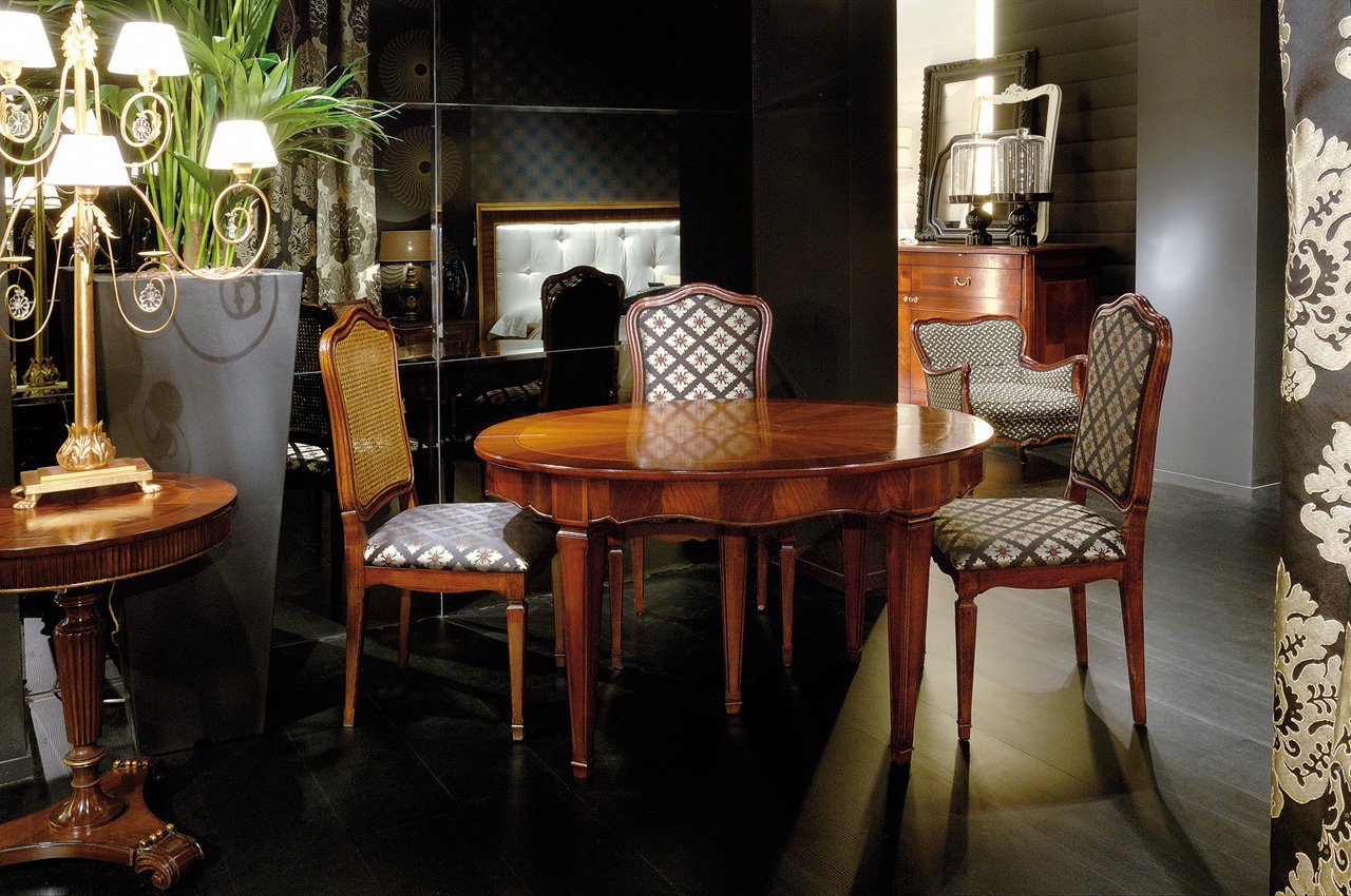 The Ottocento table from the Italian manufacturer Medea. The product is made from solid wood. Model sliding oval shape a great choice for the dining room in a classic style. Colors: brown, natural color of the wood.