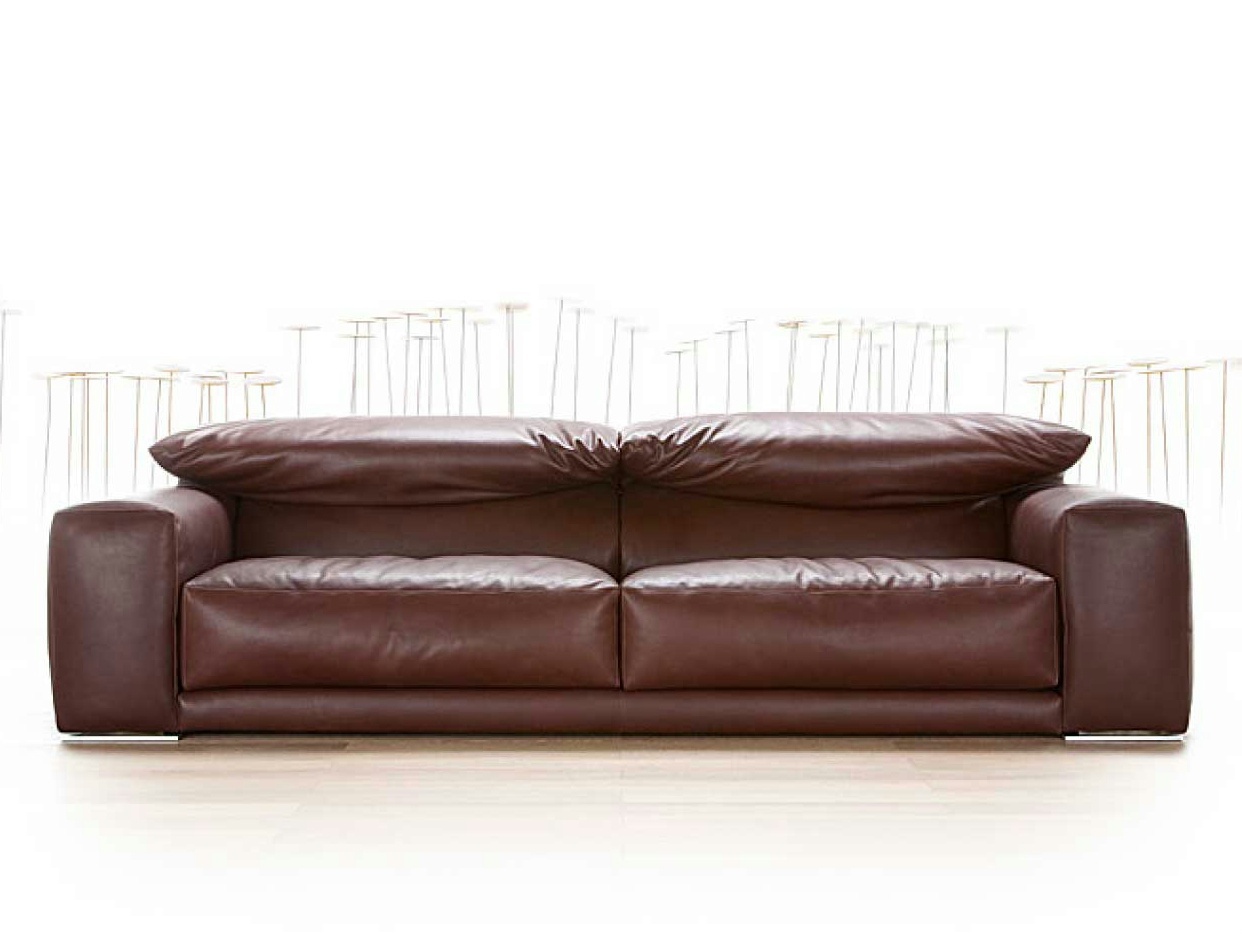 Double corner sofa of Open Sky from the Italian manufacturer Erba Italia. The model with the square armrests. The walls were covered with skin. Color catalog of the company. The legs are metal. The filler is not deformable polyurethane foam.