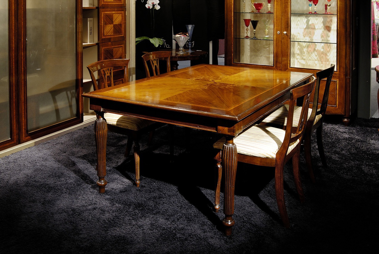 The Ottocento table from the Italian manufacturer Medea. The product is made from solid wood. Model dining folding / sliding is for the dining room in a classic style. Colors: brown, natural color of the wood.