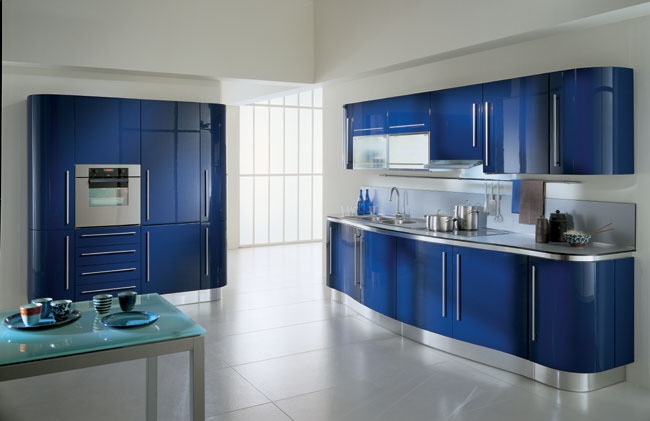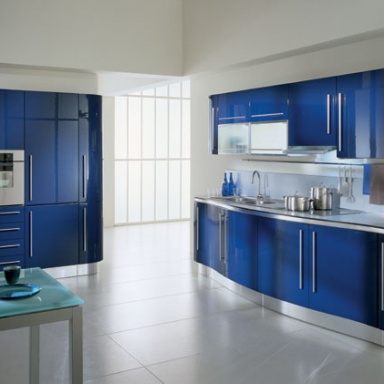 Set for the kitchen from Italian manufacturer Fiamberti. Set in an art Nouveau style. The base is made from aluminum. The working area is of stainless steel. Sash - blind/frosted glass. Trim and accessories are designed for maximum functionality. Color range: blue.