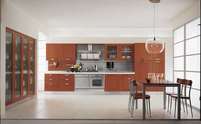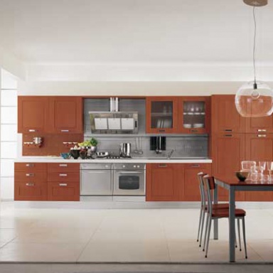 Set for the kitchen from Italian manufacturer Fiamberti. Model on a frame of wood. The base and accessories are made of stainless steel and aluminum. Sash blind or glazed. Color - brown.
