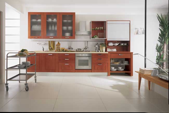 Set for the kitchen from Italian manufacturer Fiamberti. Elegant set with a system of floor and wall mounted drawers and cupboards. Material - solid wood. Accessories metal. Fold top boxes glazed. The working surface of the treated marble. The surface is painted with lacquer.