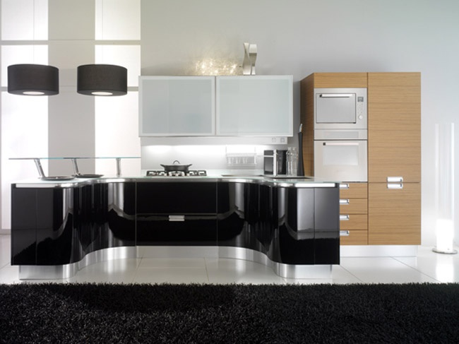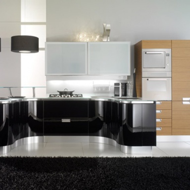 Set for the kitchen from Fiamberti Italian production. Set in an art Nouveau style. The base is made from aluminum. The working area is of stainless steel. The surface is treated with varnish from the range of the campaign. Kitchen with built-in illumination. Colors: natural wood color, white, black.
