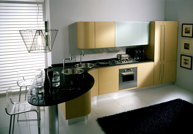 Set for the kitchen from Fiamberti Italian production. Set in a contemporary style. The base is made from aluminum. The working area of glass. The surface is treated with varnish from the range of the campaign. Colors: beige, black.