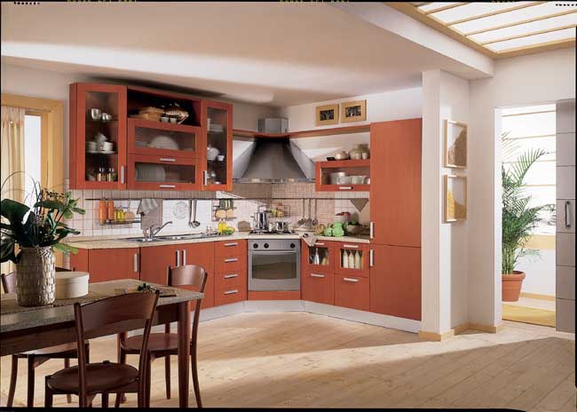 Set for the kitchen from Fiamberti Italian production. The base is made from aluminum. The working area of stone. The surface is treated with varnish from the range of the campaign. Doors - solid wood/glass. Colors: brown.