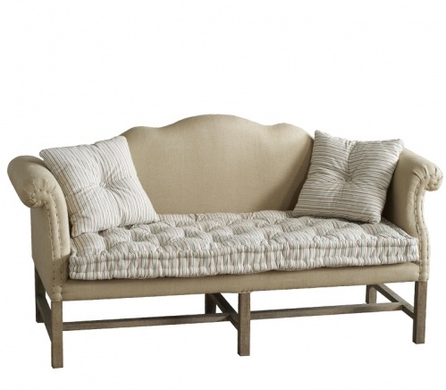 A double sofa from Italian manufacturer Dialma Brown. The frame is made from solid wood, upholstered in leather or fabric from the range campaign. The seat is removable. The design of complementary decorative pillows. A great choice for interior design in Provence style. Colours in stock.