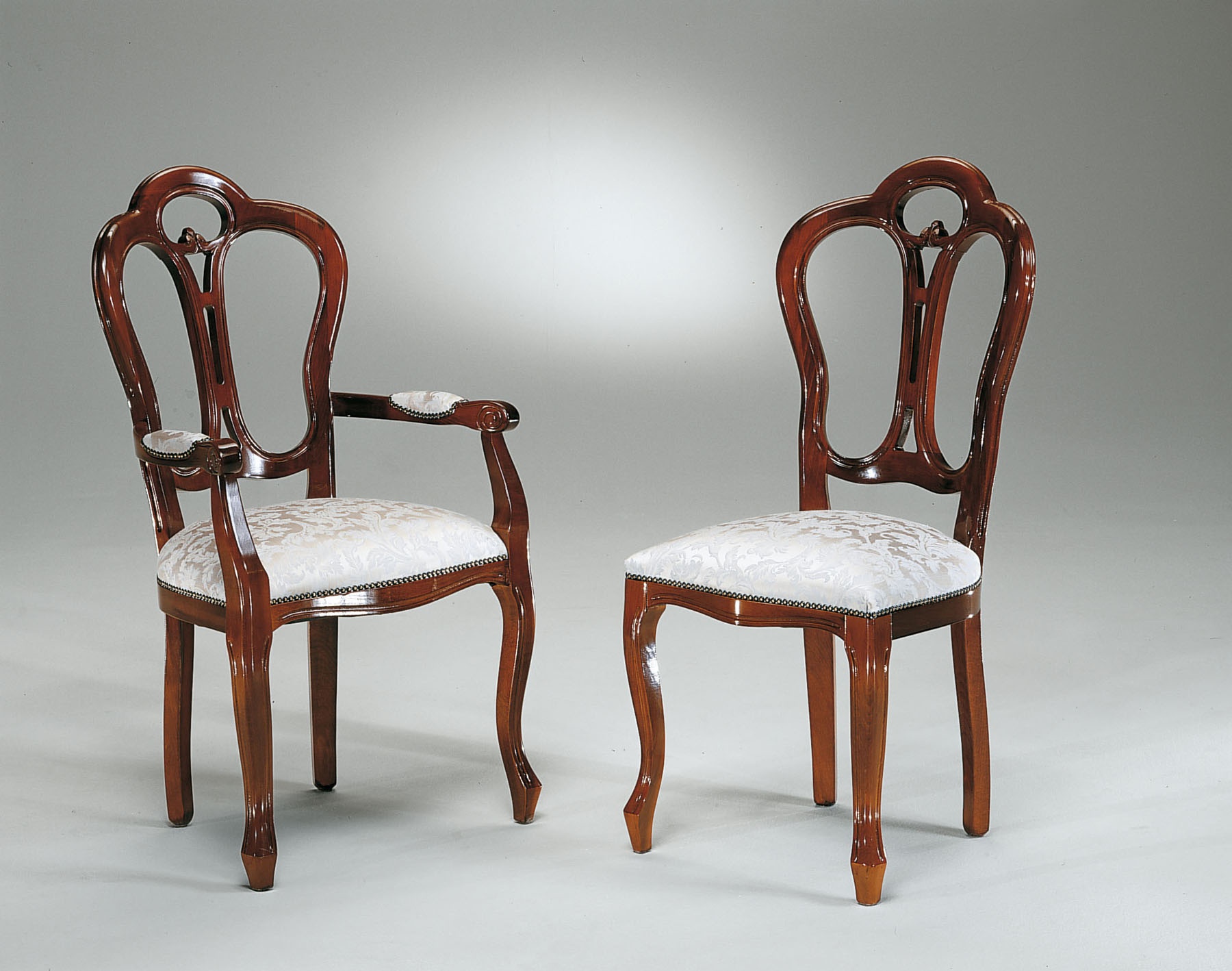 Chair Giglio from the Italian company RM Arredamenti, a collection of Novalinea. The frame is made from solid wood, varnished. The back is hard, carved. The model is available with armrests or without. Front legs with the end of "the hoof". Upholstery textile, white color. The product is executed in classical style.