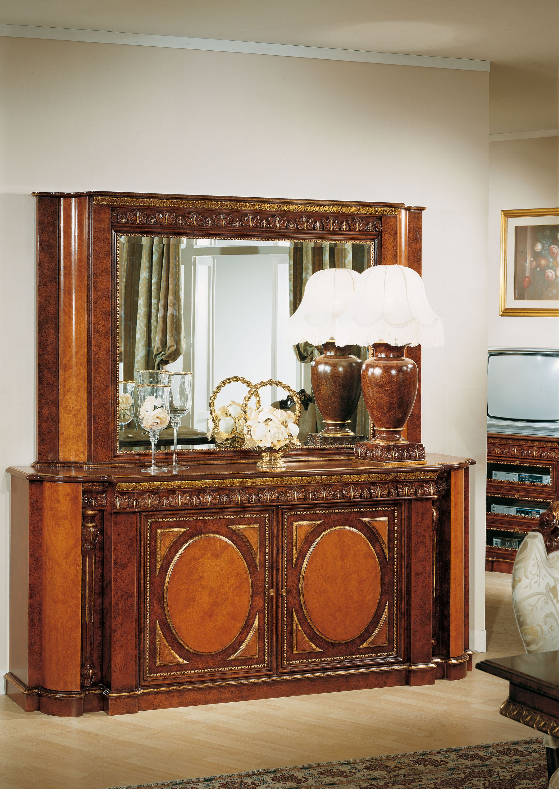 The Atea of drawers from Italian manufacturer RM Arredamenti, a collection of Novalinea. The frame is made of solid walnut. Model two door. Dresser is brown in color, decorated with handmade carving. Accessories metal. The model is executed in classical style, to be complemented by the mirror.