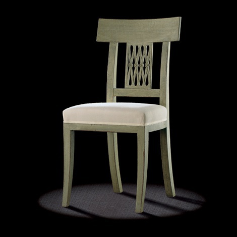 The chair from Belgian manufacturer Massant. The model with a rigid backrest. Material - solid wood. The surface can be lacquered, and artificially aged. The seat is covered with textile. Made in a classic style.