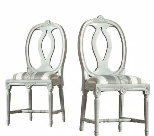 Chair with medalonnye back from the Italian manufacturer Dialma Brown. The frame is made from solid wood, the surface is treated with lacquer gray. Upholstery - textiles from a range of campaigns. The model is designed for the interior in the Provence style.