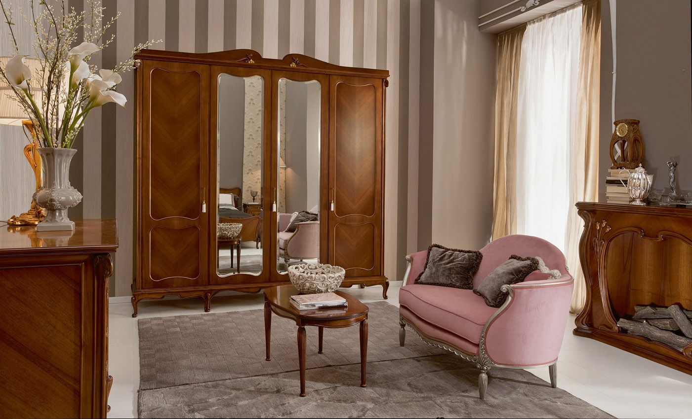 Cabinet Liberty from the Italian manufacturer Medea. The product is made from solid wood. Model wardrobe for bedroom in the liberty style. Colors: brown, natural color of the wood.