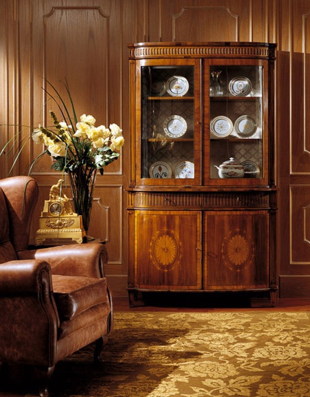 Showcase from Italian manufacturer Palmobili. The model is made in classic style. Housing and shelves made of solid wood. Finish option to choose from a collection factory. Sash glazed and deaf. Accessories metal.