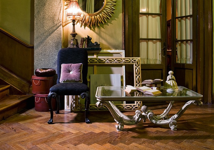 Coffee table from Italian producer Roberto Giovaninni. The base is made of solid wood. Worktop - glass. Carving handmade. Colors: silver. Finish - aged. The model will perfectly complement the classic interior of the living room.