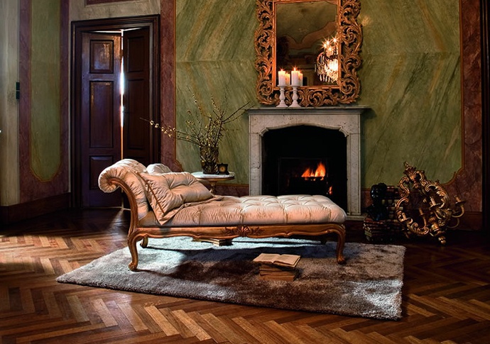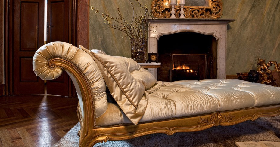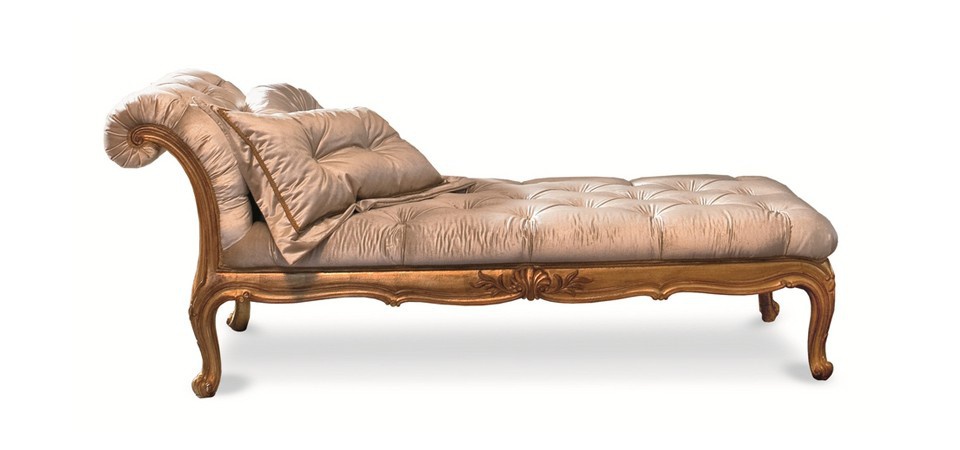The couch from the Italian manufacturer Roberto Giovaninni. The model is made in classic style. Carved frame made of solid wood. Upholstery - textiles Golden color, decorated with stitch Capito. Carving handmade. The couch will perfectly complement the interior of your living room.