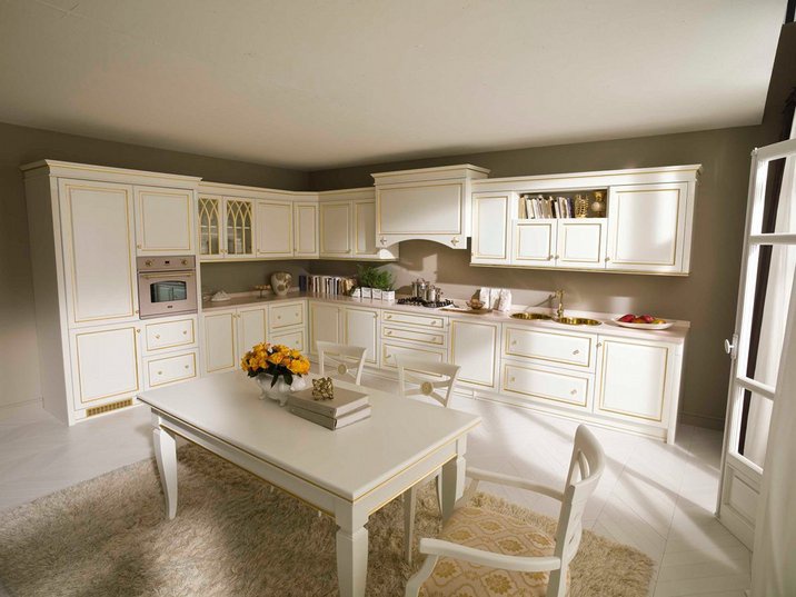 Kitchen with island Desire from the Italian manufacturer Only Wood. Set in classical style. The furniture is made of solid wood, the surface is treated with varnish from the range of the factory. Finishing - gilding. The handmade decor. Colours in stock.