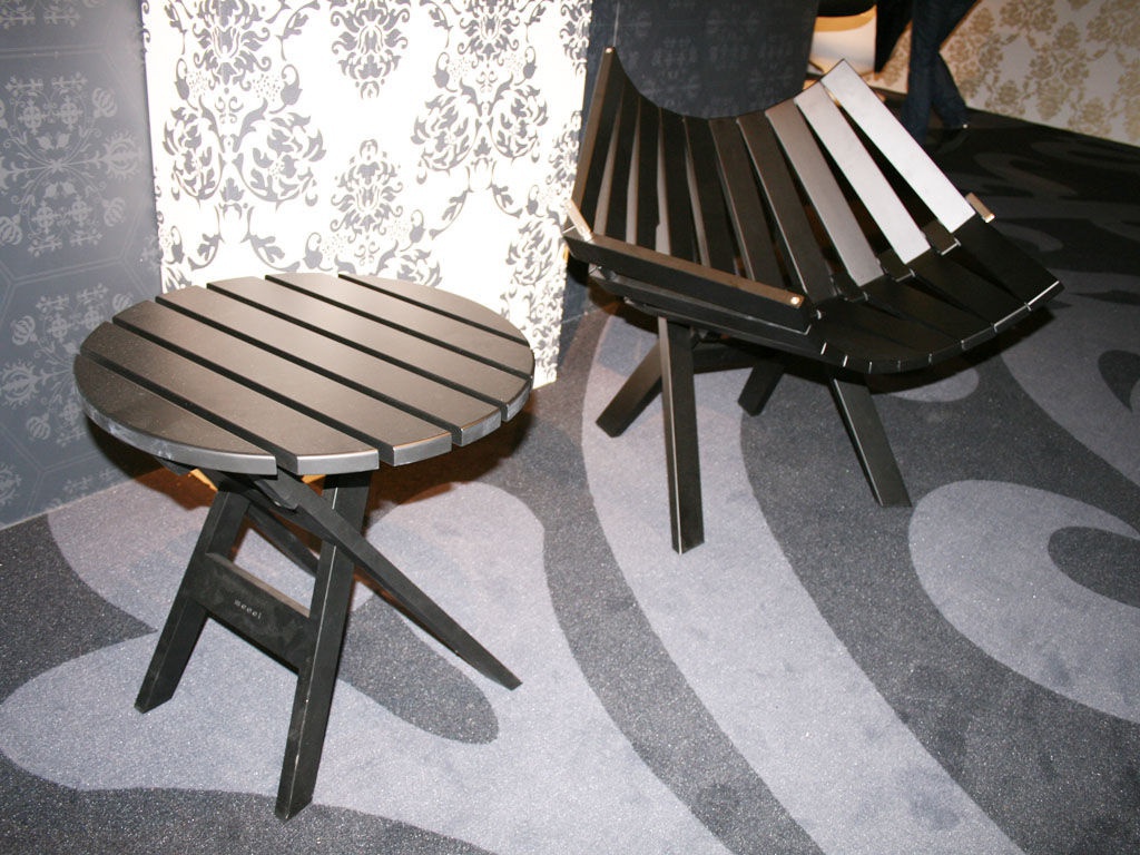 Coffee table Clip Table from the Dutch manufacturer Moooi. The frame is made from solid wood. A folding model with a round top. An excellent choice for outdoor furniture. Colours in stock.