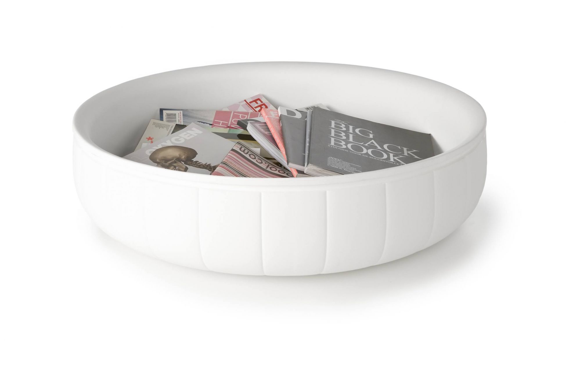Table Container Bowl from the Dutch manufacturer Moooi. The frame is made from polyethylene (PE), in black or white. This model can serve as a container for magazines, as a trivet and as a coffee table-a container with an extra lid. Design solution for internal and external interior.