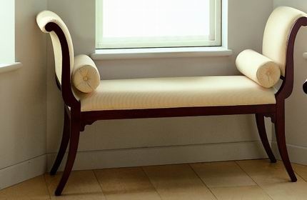 Bench from Pompea Italian manufacturer Piermaria. The frame is made from solid beech, upholstered in fabric from the range campaign. A great choice for the interior in classic style. They are decorated with decorative cushions. Colors: light, dark.